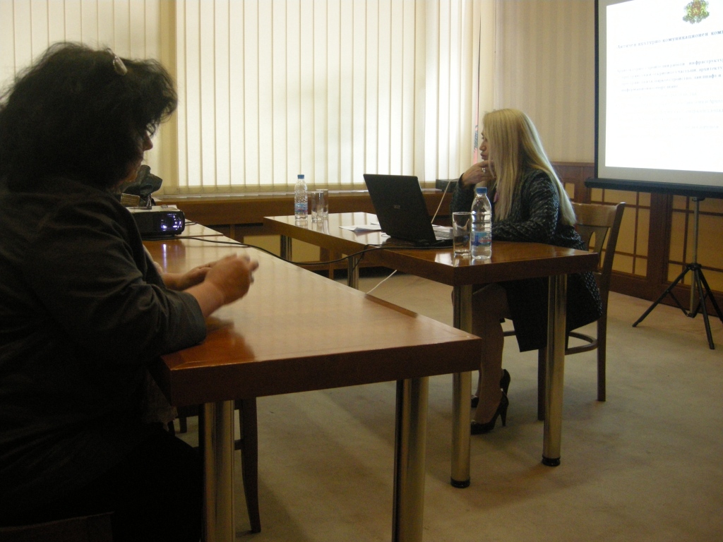 Главен експерт в дирекция „Координация на програми и проекти” при Министерството на културата, Тони Милева провежда обучениение.
