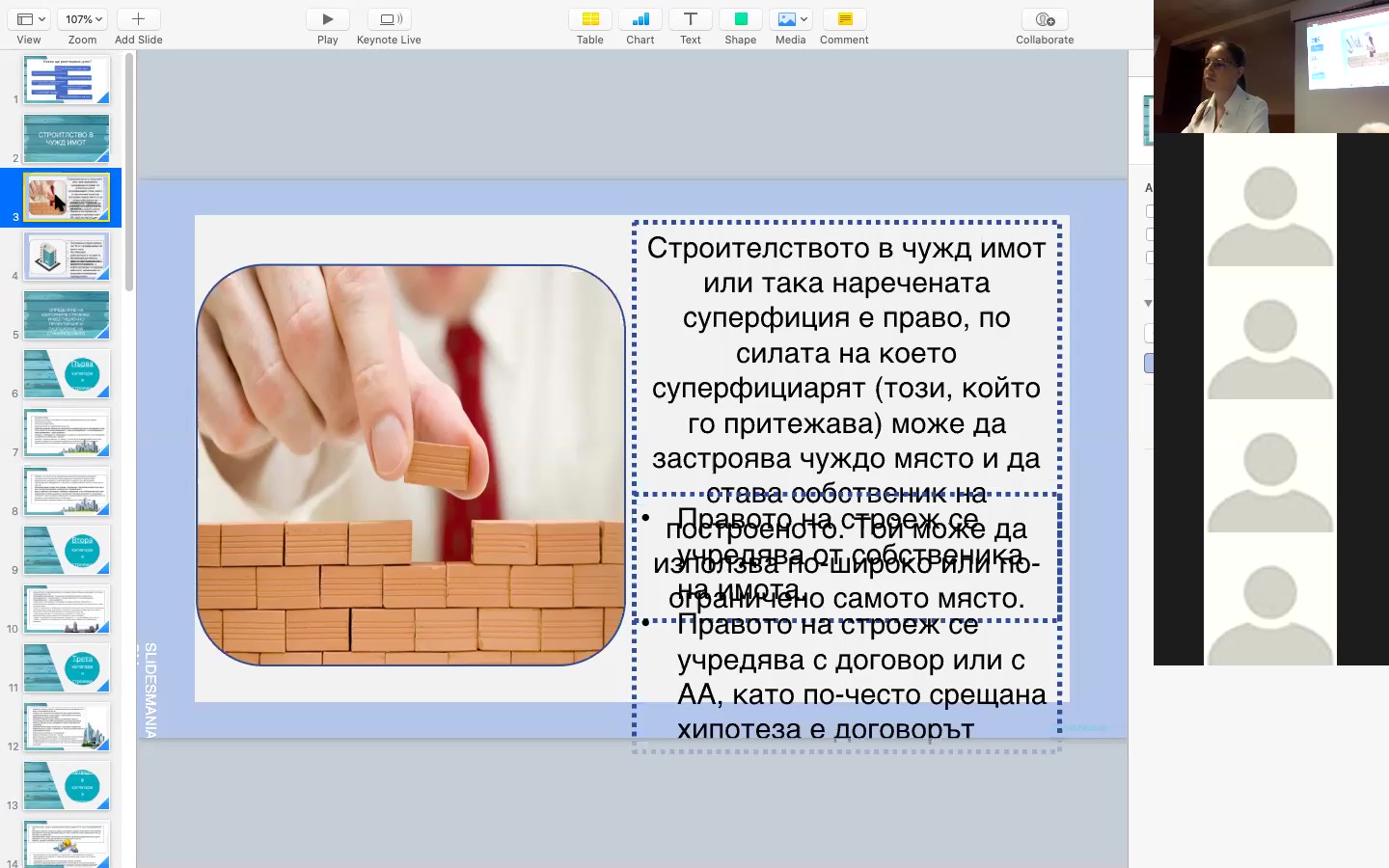 Семинар: Разрешаване на строителството. Видове протоколи и административни актове в строителството. Съоръжения на техническата инфраструктура. Строителен надзор. Определяне на категорията на строежа. Строителство в чужд имот. Общи и специални закони. Договори, отговорност на строителя при дефекти